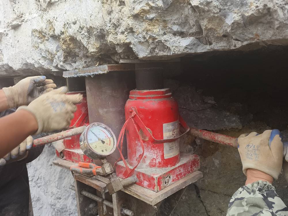 壓樁完成后,以靜壓樁為支點,利用千斤頂進(jìn)行頂升施工,糾正建筑物傾斜。